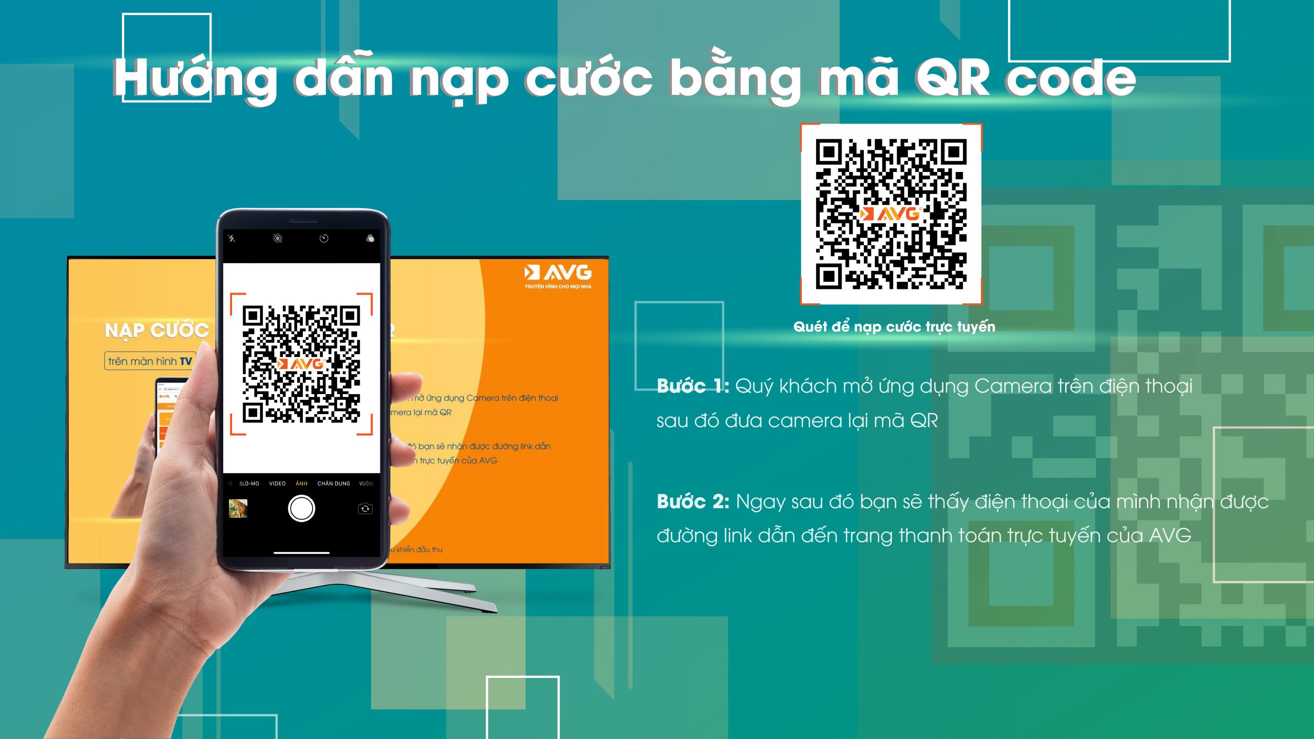 Không nằm ngoài xu hướng phát triển đó, AVG đã áp dụng công nghệ quét mã QR để phục vụ các thuê bao thanh toán cước hàng tháng tiện lợi hơn. Tính năng này cho phép khách hàng AVG thực hiện các giao dịch thanh toán cước từ xa, tại nhà, bất cứ lúc nào, thông qua việc quét ảnh mã QR Code được cung cấp tại Kênh 1 của Truyền hình AVG.